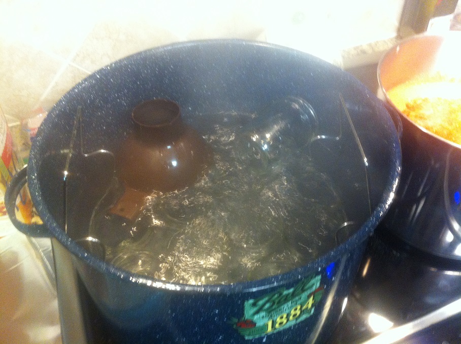 altitude. *Please note, the pic shows the jars above the boiling water. They must be processed in the boiling water. |