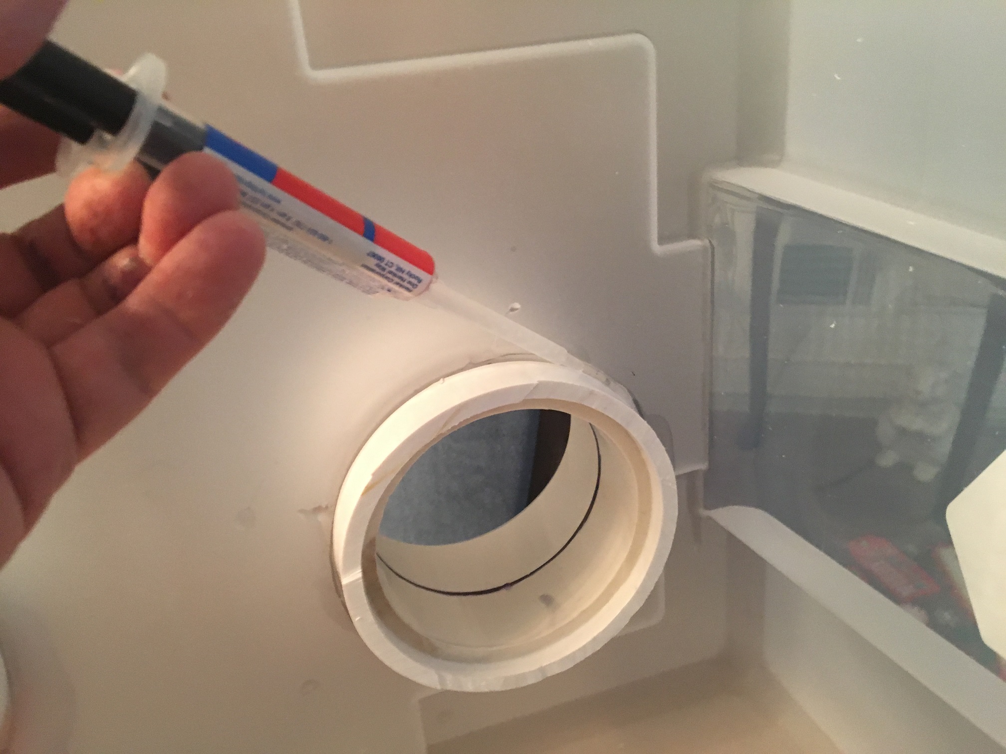 After all the cements/glues have set, application of a silicone caulk or sealent