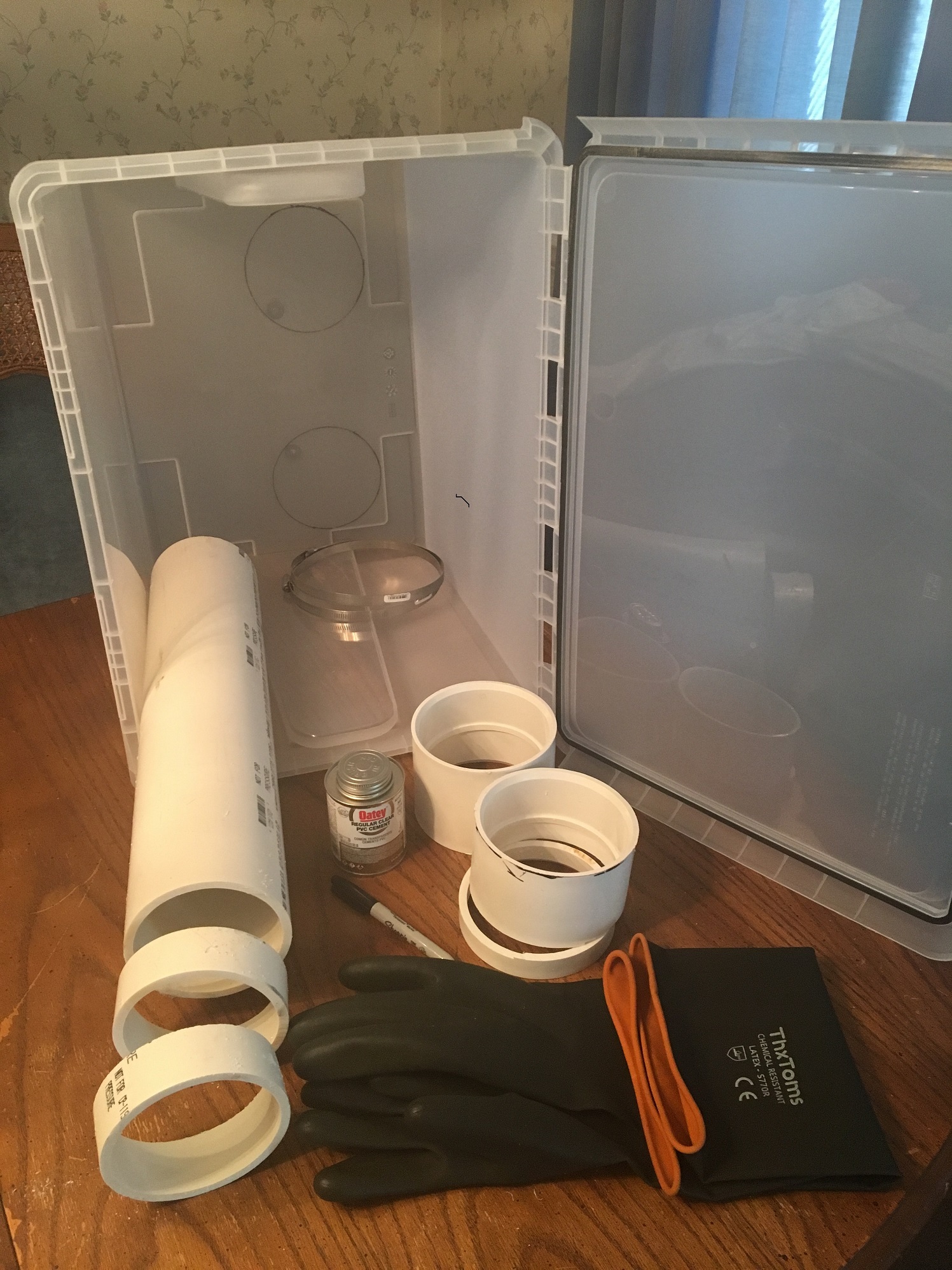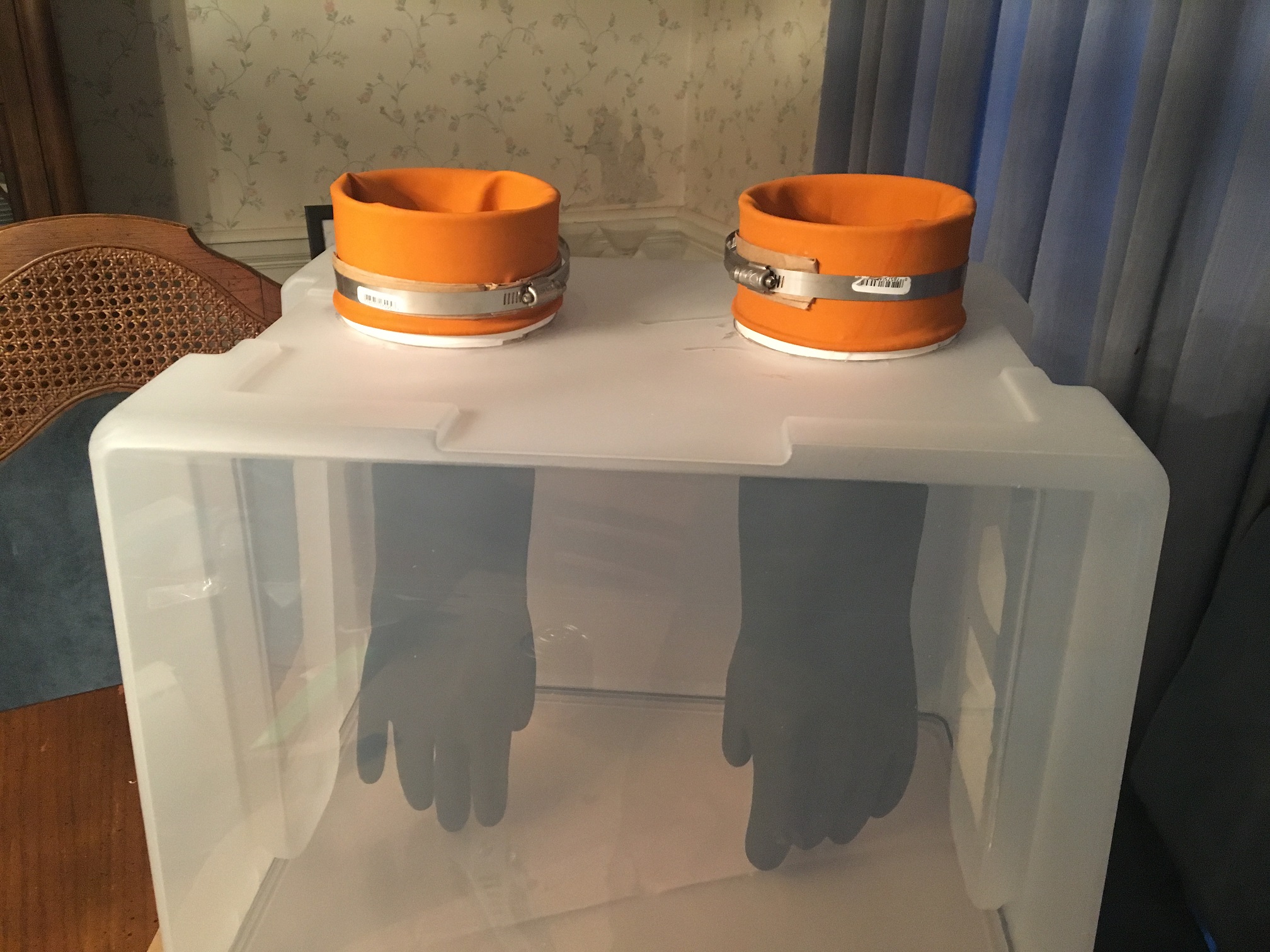 If you used the gloves and coupling in the parts list, the gloves openings