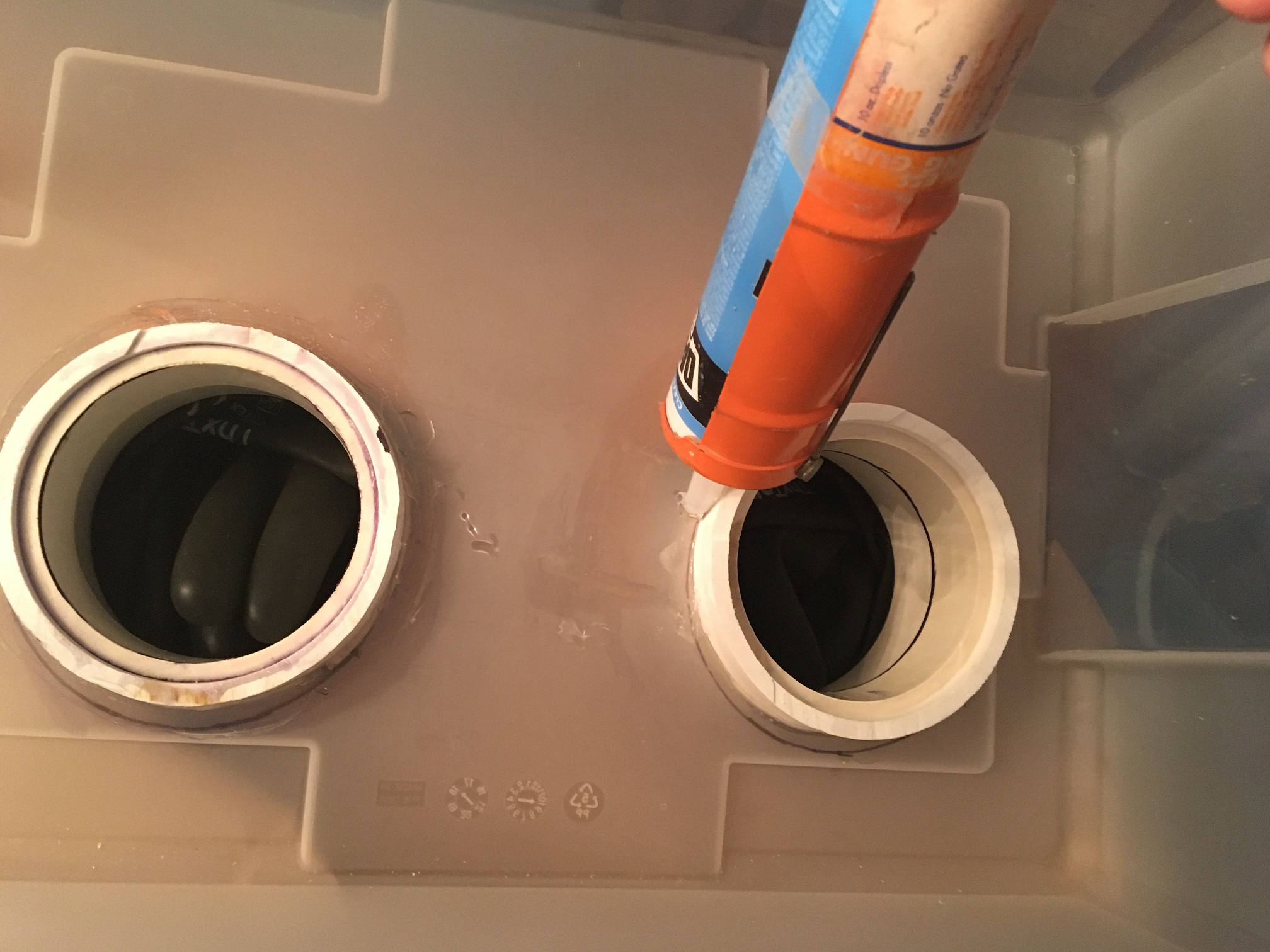 - After the silicone caulk has dried and PVC cement has been removed from any exposed