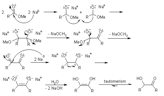 The bimolecular reductive coupling of carboxylic esters by reaction with metallic sodium in an inert solvent under reflux gives an α-hydroxyketone, which is known as an acyloin. This reaction is favoured when R is an alkyl. With longer alkyl chains, higher boiling solvents can be used. The intramolecular version of this reaction has been used extensively to close rings of different sizes, e.g. paracyclophanes or catenanes. |